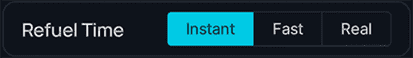 Set this setting to the desired duration of refueling. Either instant refueling (Instant - but unrealistic), realistic refuel time (Real) or a middle ground (Fast).