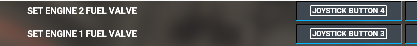 - “Toggle Engine 1 Fuel Valve” - Set to Joystick Button 3