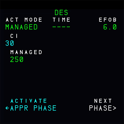SPEEDtoManaged Speed Mode(push theSpeed Selector). The aircraft should now decelerate togreen dotspeed. -