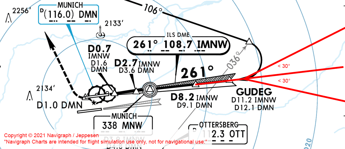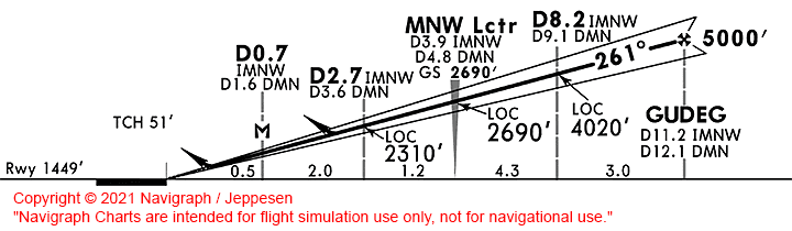 Make sure we are on the correct altitude (5000 ft in this example) and we should not have an approach angle larger than 30°.