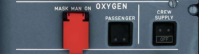 • This illuminates in white when the oxygen mask doors are actuated. It remains on until the OXYGEN TIMER RESET switch is pushed on the overhead maintenance panel.