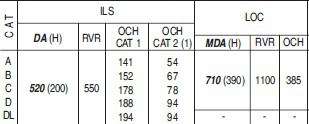 As this chart is now designed differently, it has described the MDA as a DA for the ILS. Now this is just a difference between charts and countries, some use one terminology over the other. Also, to note is the inclusion of OCH values. These are the obstacle clearance heights of all possible objects on the approach path, so if you descend below this, then there is a possibility of a collision. These OCH values are not used by the pilots in an approach but are used by the professional bodies who design the approaches as to what the minimums values should be.