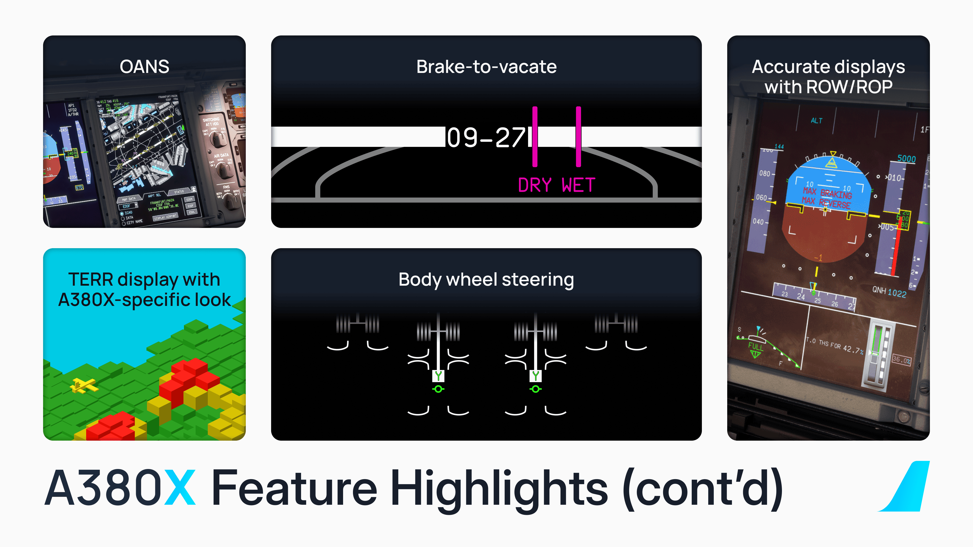 - Custom dynamic sounds for engines, flaps, slats, fuel pumps, ventilation fans, and immersive ambient sounds